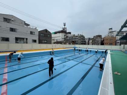 今日は、着衣泳があったため、それに伴いプールの水の入れ替え作業を行いました。また、放課後は教員でプール清掃を行い、プールをピカピカに磨きました。明日のプールの水はいつも以上に綺麗になっているのでお楽しみに!
