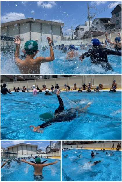 3・4年生は、3時間目にプールに入りました。今日はクロールの練習に時間を取りましたが、しっかり泳げるようにクロールができる子と苦手と感じている子に分けて、苦手な子どもたちのコースに教員をたくさん割り当ててたくさん泳げるようにしました。