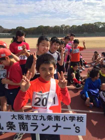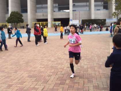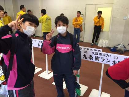 アンカーとして競技場のトラック内で4人の走者を抜き、大役を果たした6年女子とチームのまとめ役として地道に練習を重ねた6年男子が代表で参加しました。