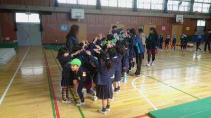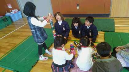 幼小交流会の最後には、幼稚園のお友だちと1年生とで今日の感想を伝え合いました。途中で、じゃんけん大会も行い、楽しいひとときを過ごすことができました。最後は、1年生がトンネルを作って、「ありがとう〜。」「さようなら〜。」「またきてね〜。」と九条幼稚園と福音幼稚園の皆さんをお見送りしました。