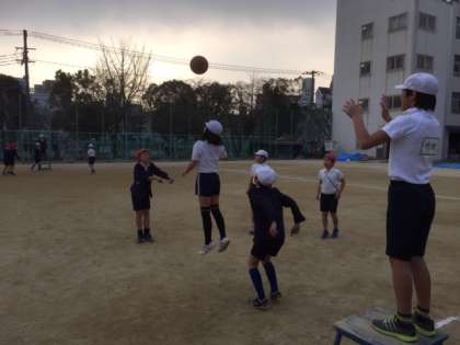 パスやドリブル、シュートの見本を見せながら、3年生が楽しめるようにとさりげない気遣いをする4・5・6年生。さすが九条南小学校の高学年ですね!