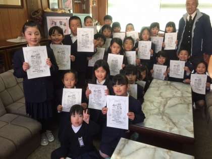 チャレンジ100を達成した2年1組の児童に校長賞が贈られました。