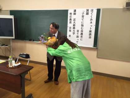 近大姫路大学 谷坂 昇特任教授を講師に招聘し、はぐくみネット座談会が開催されました。