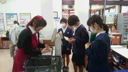 グループで話し合い、電卓を使いながら予算ぴったりになるように工夫していました。レジでは、ほとんどの班が予算ぴったりでの金額になっており、小さな声で「やった!」と歓声をあげていました。