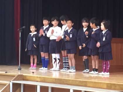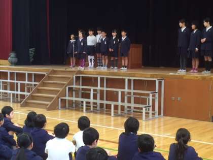先日、1・2年生の児童による音読名人発表会が行われました。