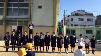 朝会で学校長から健闘を称えられ、全校児童から大きな拍手を受けました。