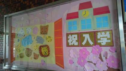 たくさんの動物たちが、咲き乱れるお花と学校を窓から見つめながら、わくわく楽しそうにお話をしています。どんなお話をしているのでしょうか。