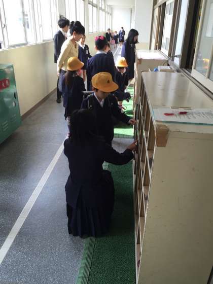 6年生は玄関の受付から教室まで案内したり、手をつないでエスコートして、式場に入場しました。靴箱への靴の入れ方、トイレの場所などを教えたり、式が始まるまで教室で本を読んであげたり。最高学年として立派に役割を果たしていました!