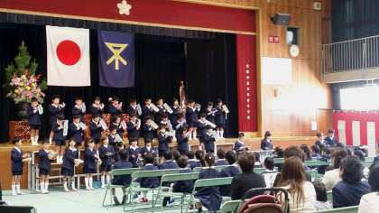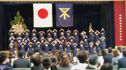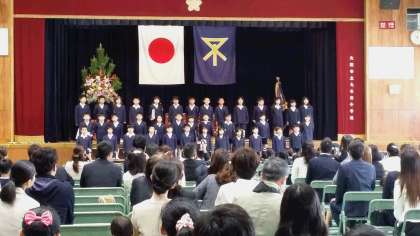 校歌を歌う場面では、6年生といっしょに九条南小学校の校歌を歌いました。