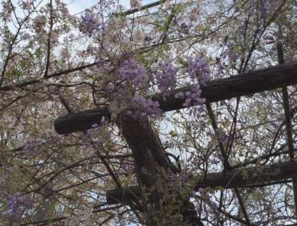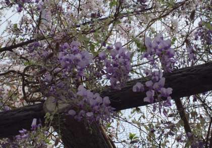 桜の花が葉桜にかわり、少し寂しさを感じていましたが、先週から開花し始めていた藤がきれいに咲き、藤棚を彩っています。