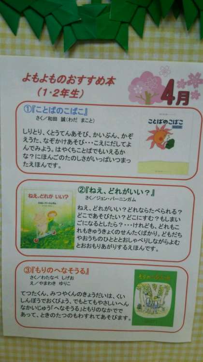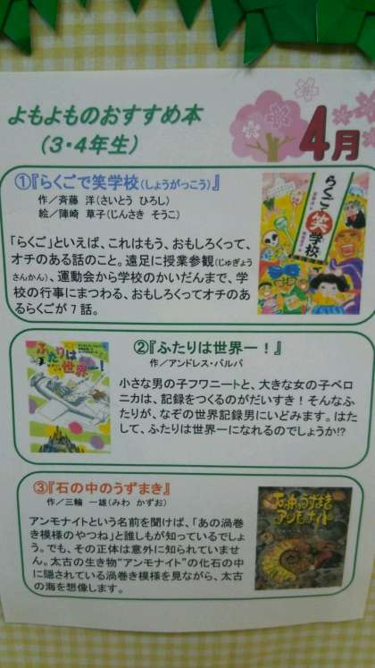 読書ボランティアよもよもの方がおすすめの本の紹介を毎月掲示してくださっています。