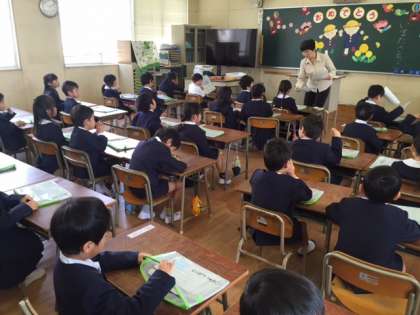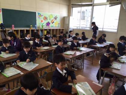 入学式でも長い時間がんばっていた1年生でしたが、初日の学習活動でも、今田先生のお話をよく聞いて、素早く行動しようとがんばっていました。