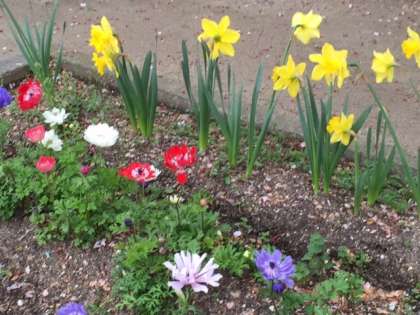こんな歌を自然と口ずさんでしまうほど可愛く、色鮮やかな春の花が校庭のあちらこちらに咲いています。
