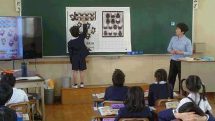 線で結んだり、ブロックを使って考え、みんなで話し合いました。