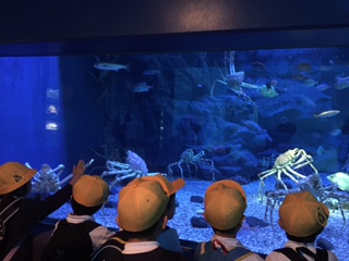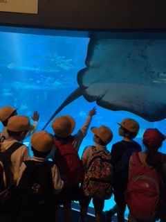 1年生と2年生でペアになって海遊館の中をまわりました。1・2年生で協力して仲良くまわることもめあてでした。2年生は優しく1年生に声をかけ、1年生は2年生の話をしっかりと聞いて仲良くまわることができました。