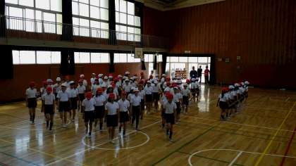 5・6年生は、南中ソーラン、集団行動を練習中です。