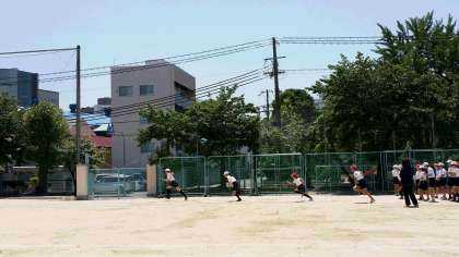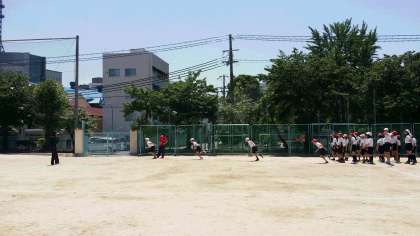 久しぶりの晴天。高学年では、運動会に向けて運動場での練習に取り組みました。