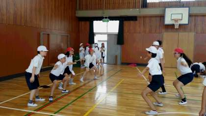 5・6年生で、協力して撮影した動画を見て練習ポイントを確認し、アドバイスし合いながら取り組むことができました。