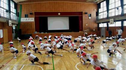 大雨で運動場の使用が心配されましたが、運動場で集団行動の練習をしました。行動との練習とは違い、移動距離が増えまが、リズムに合わせて進む練習をしました。