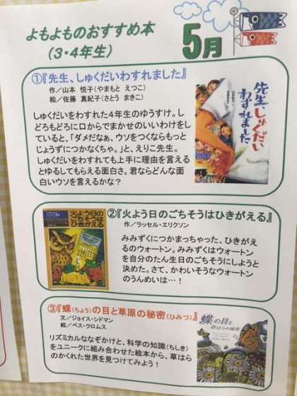 毎月、低学年向け、中学年向け、高学年向けに分けて紹介していただいています。