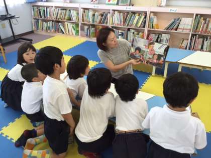 読み聞かせも毎週しています。本の返却・貸出や本選びの相談にものっています。