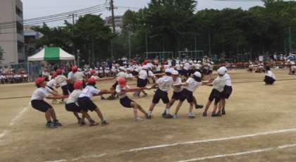 3・4年生の団体競技は「進撃の綱引き」「台風の目」でした。チームワーク抜群に各チームが頑張る姿は手に汗握る名勝負となりました。中学年の力強さを感じる素晴らしい闘いでした。