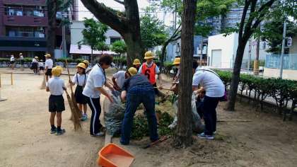 6月2日(木)に地域の皆さん・保護者のみなさんと一緒に九条南公園の清掃をしました。