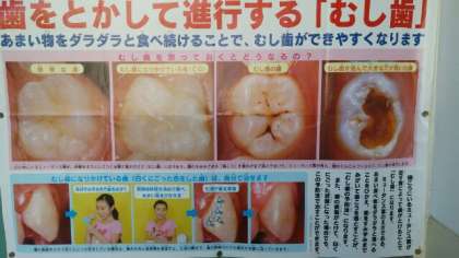 現在、保健室前には歯についての掲示をしています。
