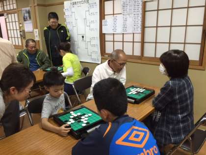 25年以上続いている大会で、子どもも大人も真剣な表情でオセロに取り組んでいました。