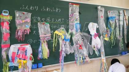 空気や風を入れて飛ばしたらどうなるかな?空気中に浮いたときのことを想像して、楽しい飾りを工夫してつけることができました。風を受けるとどんな風に飛ぶのかな?とても楽しみですね。