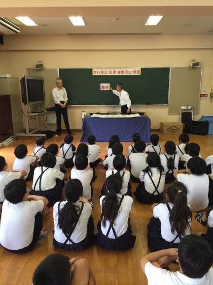 難波少年サポートセンターや西警察署の方々に来ていただき、ペープサートでの劇やDVDの視聴を通して、わかりやすく非行防止や犯罪被害防止について指導していただきました。