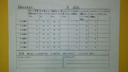 学校では、「生活ふりかえり」カードを配布し、一週間の生活をふりかえる機会をもうけました。ご家庭で子どもたちと一緒に食事や睡眠などの乱れがないかチェックしていただき、まずは、「早ね早おき朝ごはん」について、話し合う機会を作ってください。