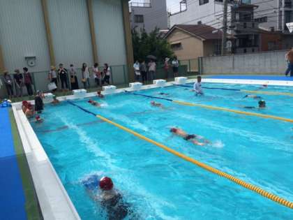 明日5日(火)は2時間目1・2年生 3時間目3・4年生の水泳公開を予定しております。入校所・腕章の着用をお願いすると同時に、真夏日が続いております。暑さ対策をお願いします。