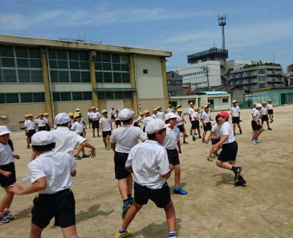 先週の金曜日の昼休みに、4年生対5年生でドッジボールをしました。5年生からのお誘いに、4年生の子どもたちは大喜びでした。ちなみに、写真の中の赤白帽子が5年生で、黄色帽子が4年生です。さぁ結果はどうだったでしょうか?来年は、九条南小学校の5・6年として、学校をひっぱていく子どもたちです。さまざまな場面で交流を増やし、絆を深めていけるといいですね。