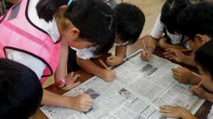 新聞に書かれたたくさんの文字。「の」の字をいくつ見つけられるかな?