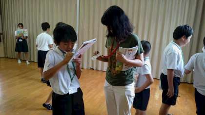 発話に困ったときは、周りの友達が助けたり、見本を示したりしながら、協力してゲームを進めていました。