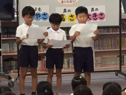 アナウンサーの読み聞かせをヒントに三者三様で気持ちの込め方を工夫した素晴らしい読み聞かせでした。