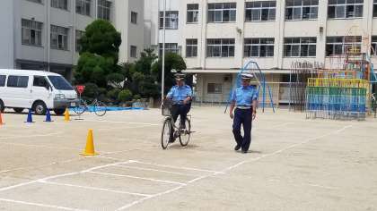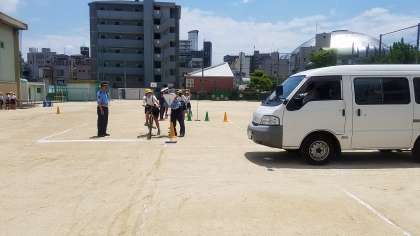 高学年は、自転車の乗り方。左から乗って、左に降りる。必ず右後方の確認を行い、車道側を自転車は走る。など、基本的なことから、再度確認する機会となりました。