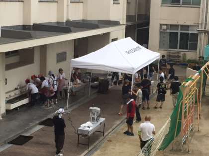 チームワークの良さでしょうね。テントや鉄板、釜などあっという間に片付きました。貴重なお休みにも関わらず、子どもたちのために労を惜しまず頑張ってくださる地域の皆様・保護者の皆様に頭がさがります。