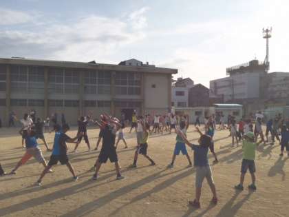 夏季休業日スタートの本日、6時30分 校庭に児童や保護者、地域の皆様が大勢集まり、朝の爽やかな空気を感じながらラジオ体操を行いました。