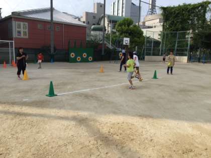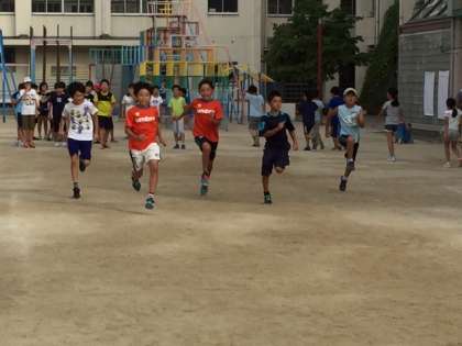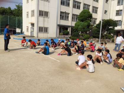 ラジオ体操終了後「大阪市小学生スポーツ交流会 陸上の部」の練習スタート