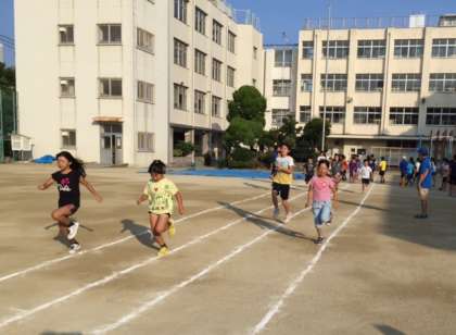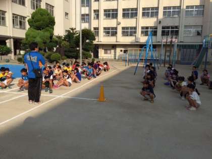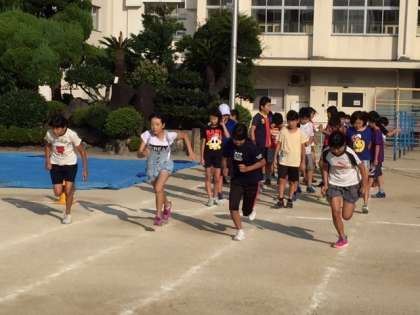 7月22日(金)ラジオ体操終了後には、約50名の児童が陸上の練習に参加していました。