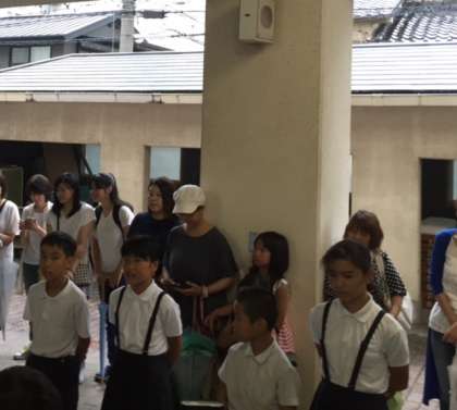 7月26日(火)7:45 あいにくの雨でしたが、元気いっぱいの司会進行で高学年らしい出発式が行われました。