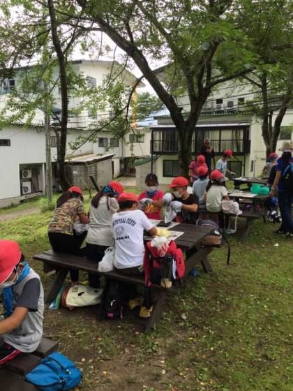 昼食の片づけも無事終わり、次は自然の中で芸術体験です。
