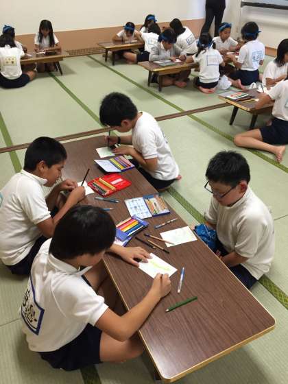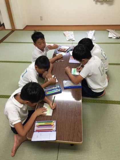 自然いっぱいのハチ高原の景色や印象に残った活動など、送る相手を思い浮かべながら、伝えたい内容を整理してかいていました。
