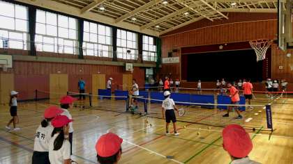 5年生の児童が、4時間目に関西テニス協会所属のインストラクターによるテニスクリニックを体験しました。未経験の児童がほとんどでしたが、ラケットの扱いにもすぐに慣れて、笑顔いっぱいの楽しい一時間になりました。