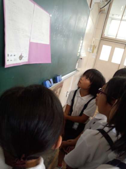 絵の具の色作り、10円玉をきれいにする液、ネコの種類、パンができるまで、葉っぱの収集など様々なテーマがあり、子ども達は発表者の話を興味を持って聞き、「自分も作ってみたいな」と感想を述べていました。
