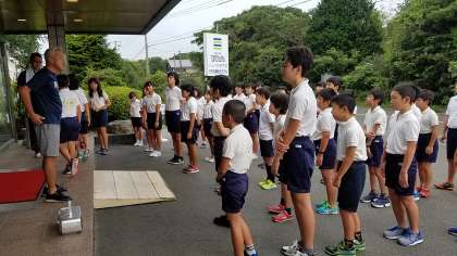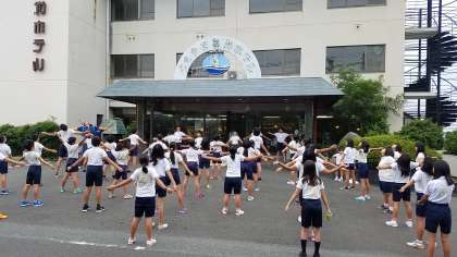 朝の会では、伊勢志摩の空気をいっぱい吸いながらラジオ体操を行いました。
