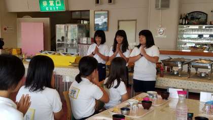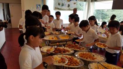 子どもたちは、海の活動に向け、バランスも考えながらお皿にとり、美味しそうに食べていました。