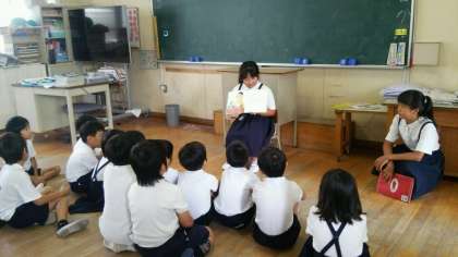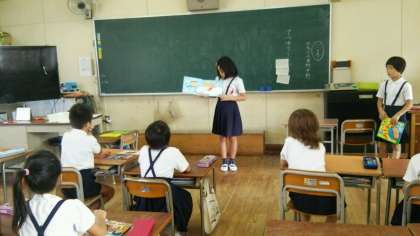 図書委員会では、毎月1回朝の読書タイムに各教室に出向き、児童による本の読み聞かせを行っています。委員会活動のある日に図書室で読み聞かせをしたい本を選び、読む練習をしています。一人一人緊張しながら臨んでいることと思いますが、どの児童も作者の思いを想像しながら読もうと頑張っていました。